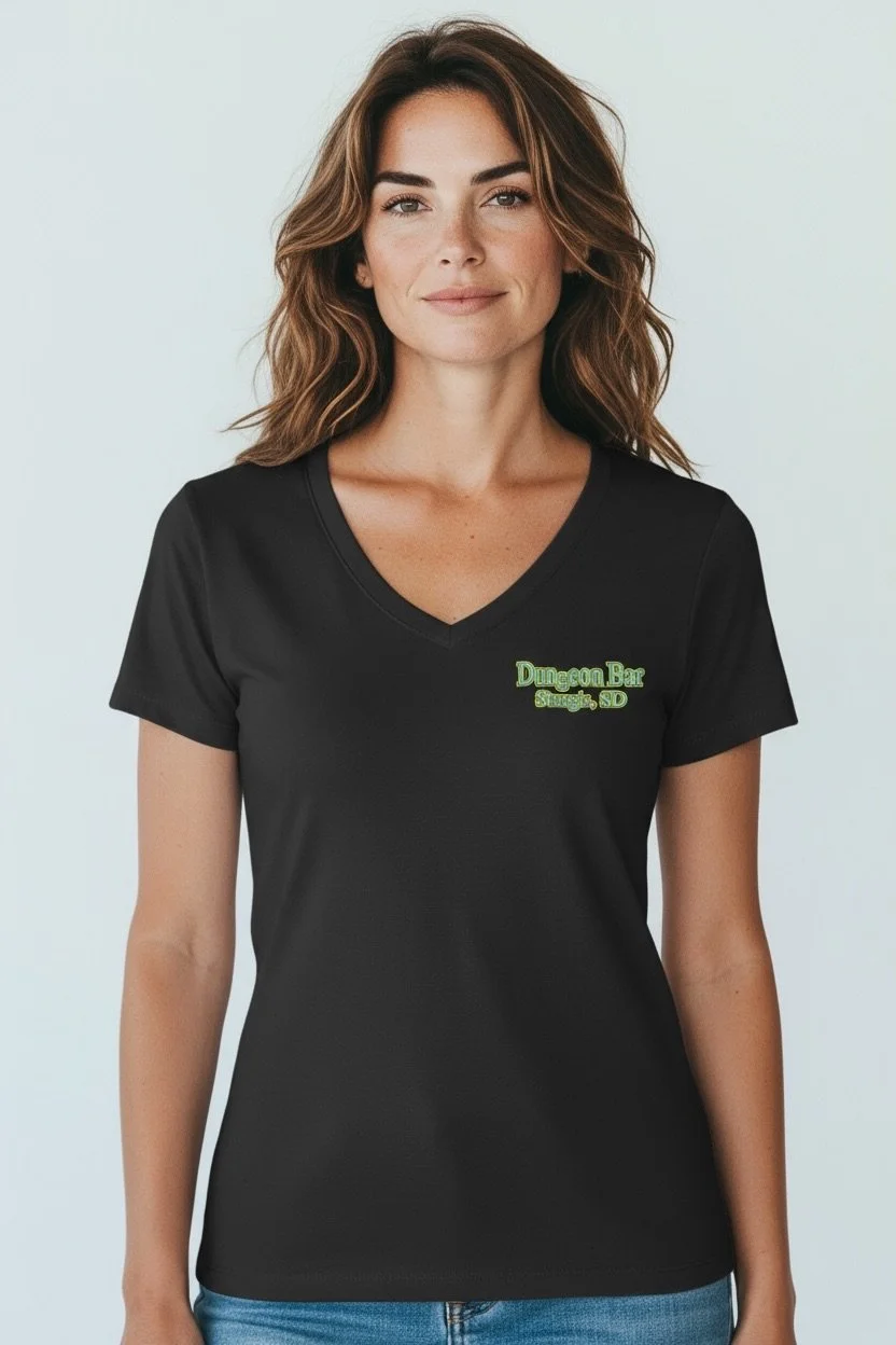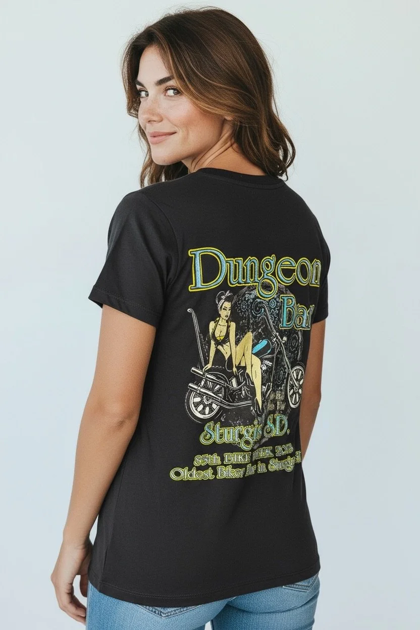 Dungeon Bar Merch › 85th Anniversary V-Neck – Black Image 1 of 2 Image 2 of 2 85th Anniversary V-Neck – Black $26.00 Black Dungeon Bar 2025 85th Anniversary V-neck featuring the biker-girl back graphic and front logo. Perfect Rally merch. Size: Small Medium Large X-Large Quantity: Add To Cart Added! Black Dungeon Bar 2025 85th Anniversary V-neck featuring the biker-girl back graphic and front logo. Perfect Rally merch.